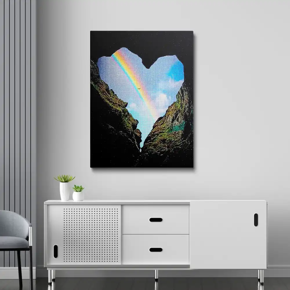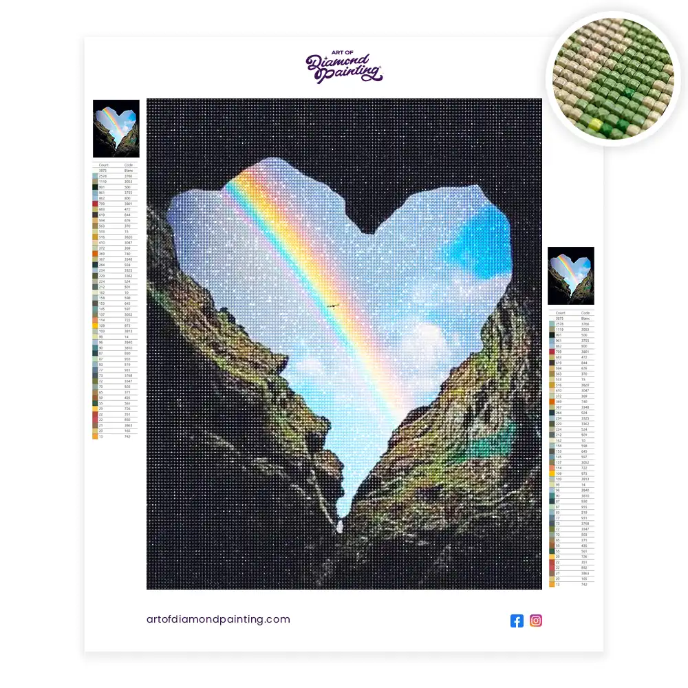 This Heart cave rainbow diamond painting kit contains all the necessary materials to create your artwork