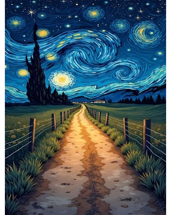 Starry night path painting