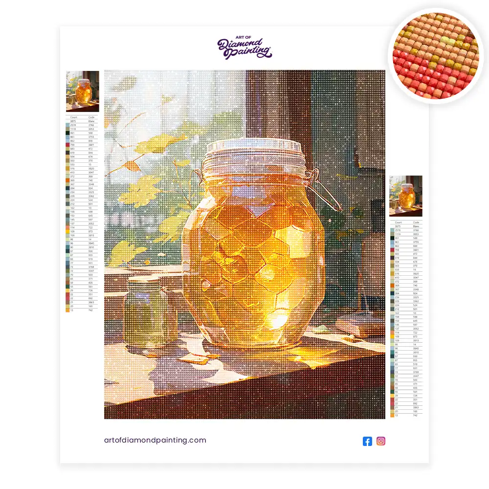 Honey jar diamond painting is an awesome way to begin your painting journey. A journey full of colours that sometimes comes with lots of patience, passion, and planning. But, always with love. At the conclusion of each day, it provides a gratifying sensation that enhances your self-assurance as you realize your own accomplishments. So why delay any further? Simply make your purchase and begin today.