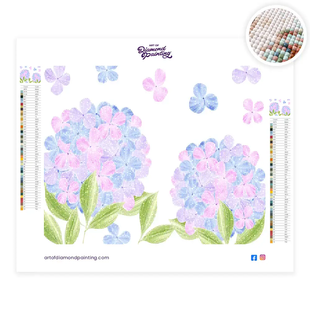 This Hydrangea diamond painting kit contains all the necessary materials to create your artwork