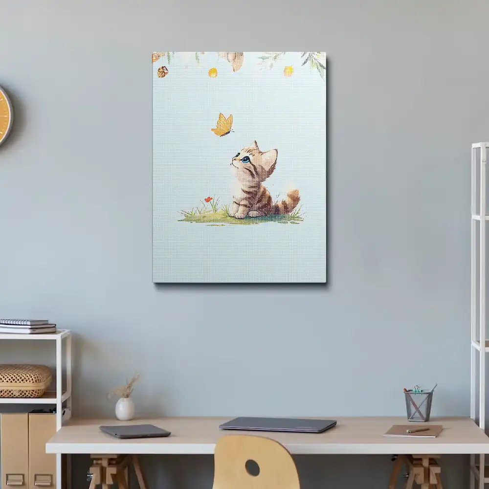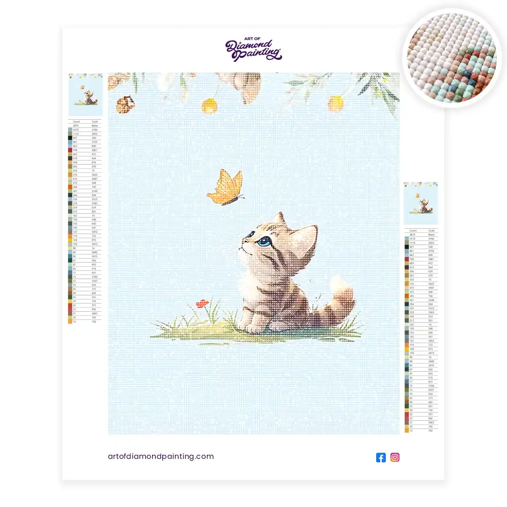 This Kitten gazing at butterfly kit contains all the necessary materials to create your artwork