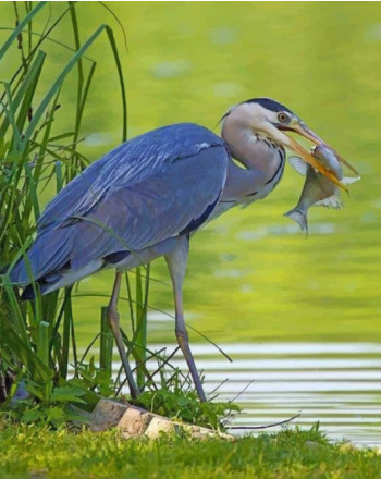 Grey heron with fish diamond painting