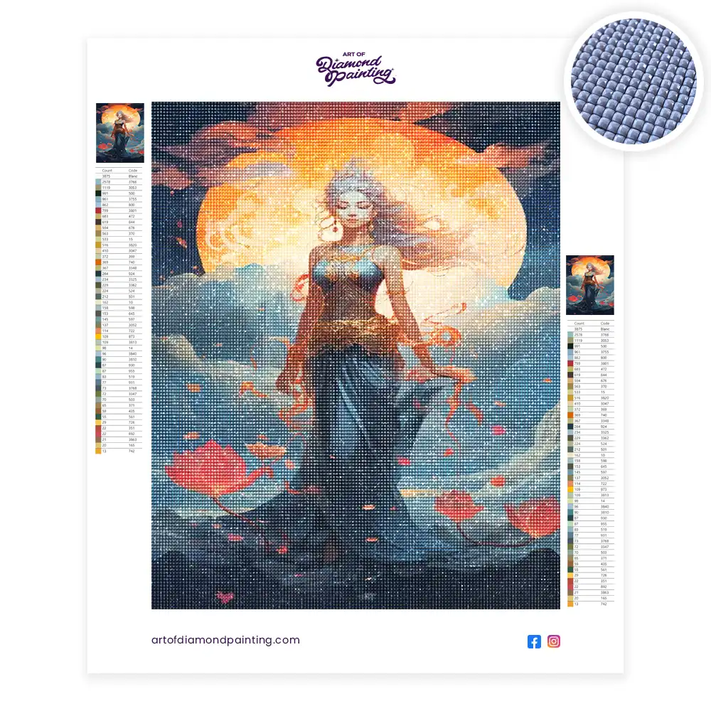 Lunar goddess diamond painting is an awesome way to begin your painting journey. A journey full of colours that sometimes comes with lots of patience, passion, and planning. But, always with love. At the conclusion of each day, it provides a gratifying sensation that enhances your self-assurance as you realize your own accomplishments. So why delay any further? Simply make your purchase and begin today.