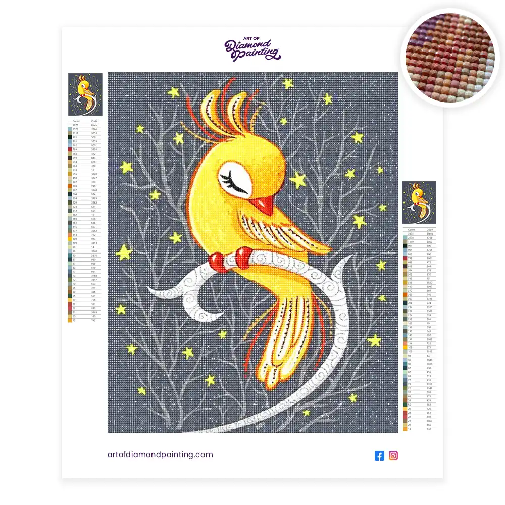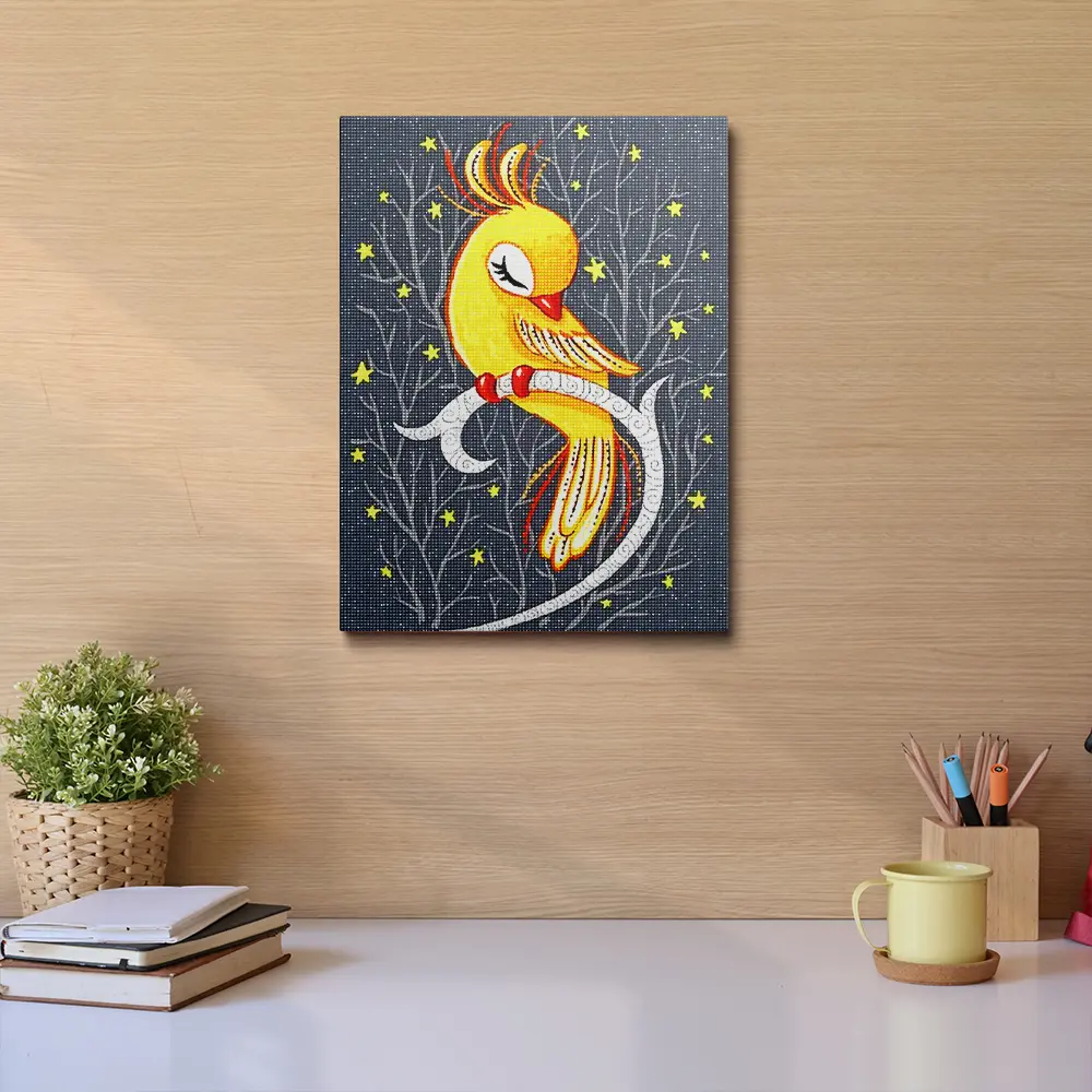 This Magical Canary diamond painting kit contains all the necessary materials to create your artwork