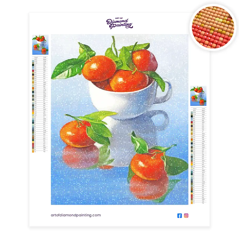 This Mandarine in cup diamond painting kit contains all the necessary materials to create your artwork