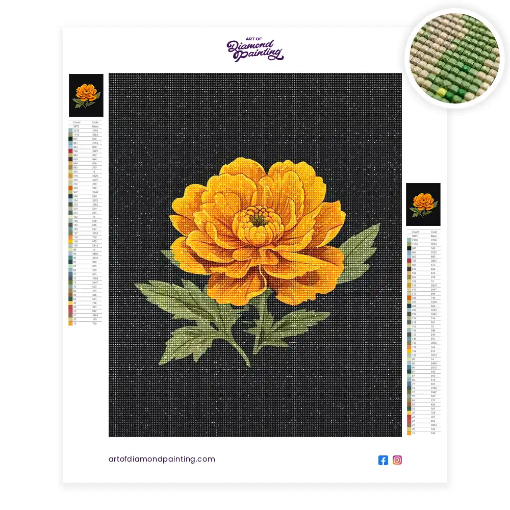 Marigold flower painting diamond painting is an awesome way to begin your painting journey. A journey full of colours that sometimes comes with lots of patience, passion, and planning. But, always with love. At the conclusion of each day, it provides a gratifying sensation that enhances your self-assurance as you realize your own accomplishments. So why delay any further? Simply make your purchase and begin today.