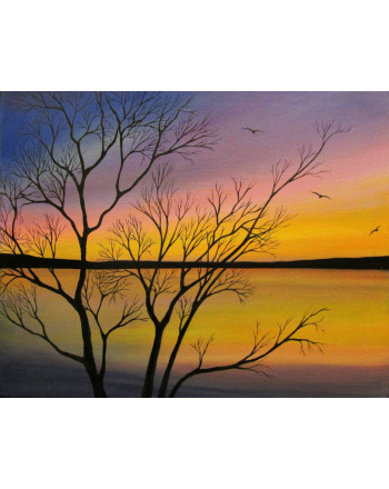 Dry trees sunset diamond painting