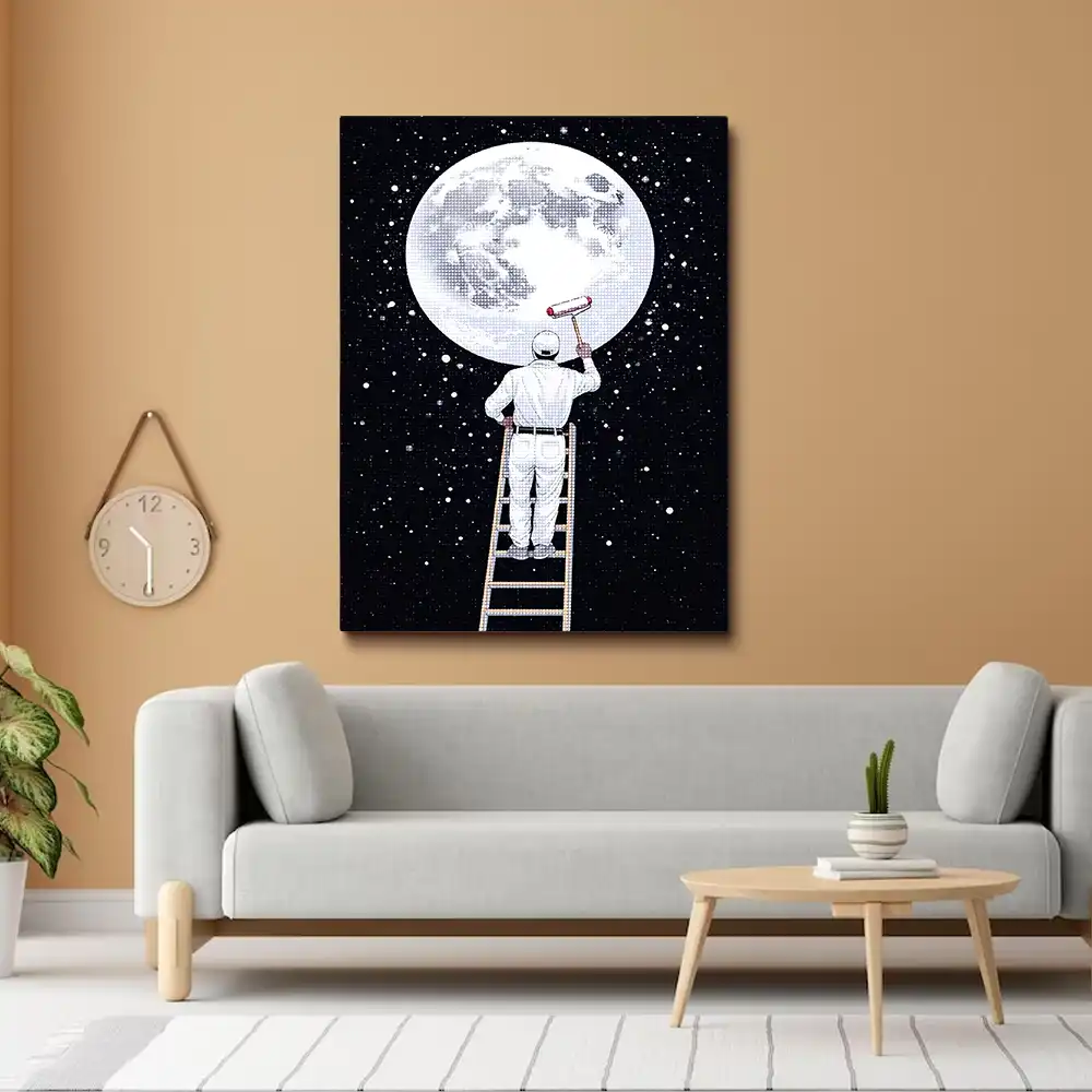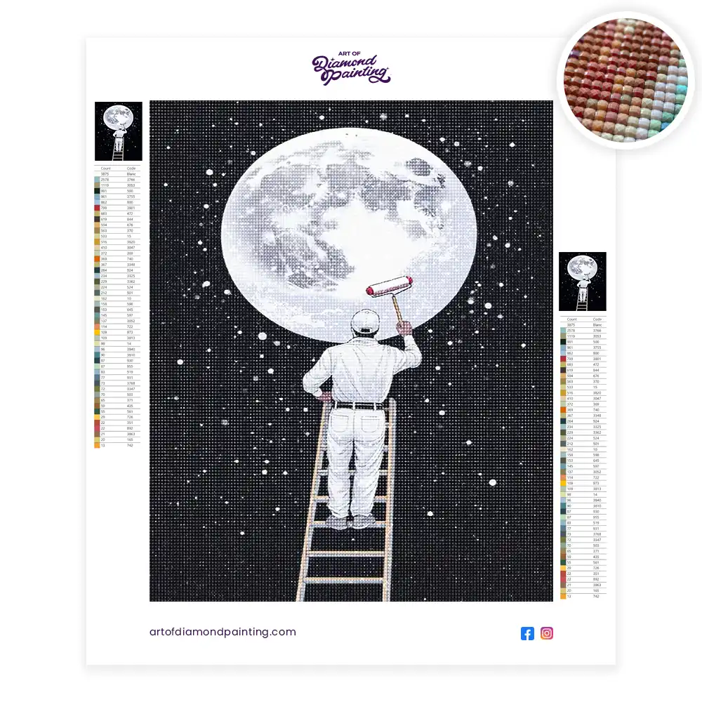 Moon painter on a ladder diamond painting is an awesome way to begin your painting journey. A journey full of colours that sometimes comes with lots of patience, passion, and planning. But, always with love. At the conclusion of each day, it provides a gratifying sensation that enhances your self-assurance as you realize your own accomplishments. So why delay any further? Simply make your purchase and begin today.