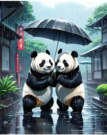 Pandas in rain