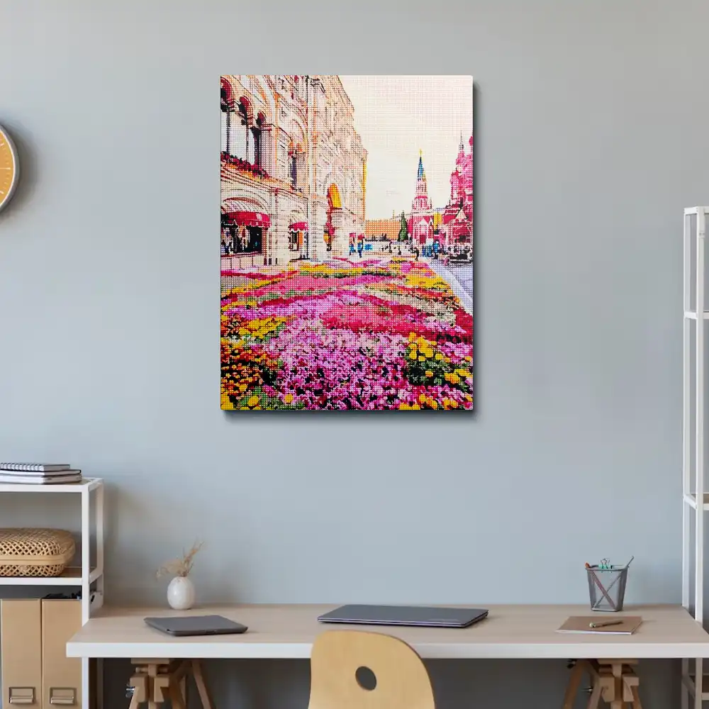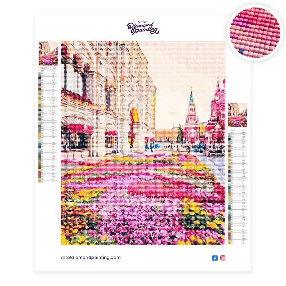 This Nikolskaya street flowers moscow diamond painting kit contains all the necessary materials to create your artwork