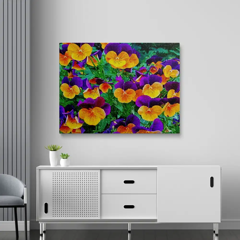 Orange and purple pansies diamond painting diamond painting is an awesome way to begin your painting journey. A journey full of colours that sometimes comes with lots of patience, passion, and planning. But, always with love. At the conclusion of each day, it provides a gratifying sensation that enhances your self-assurance as you realize your own accomplishments. So why delay any further? Simply make your purchase and begin today.