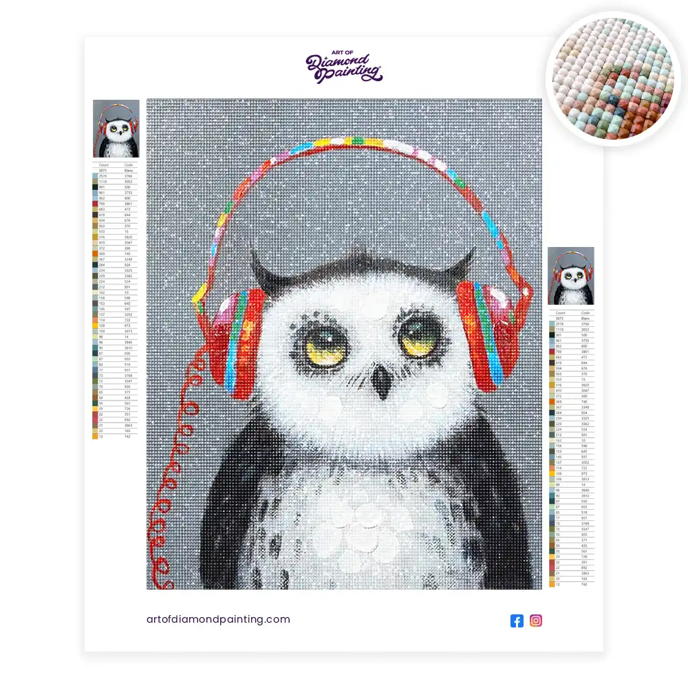 This Owl listened to the music diamond painting kit contains all the necessary materials to create your artwork