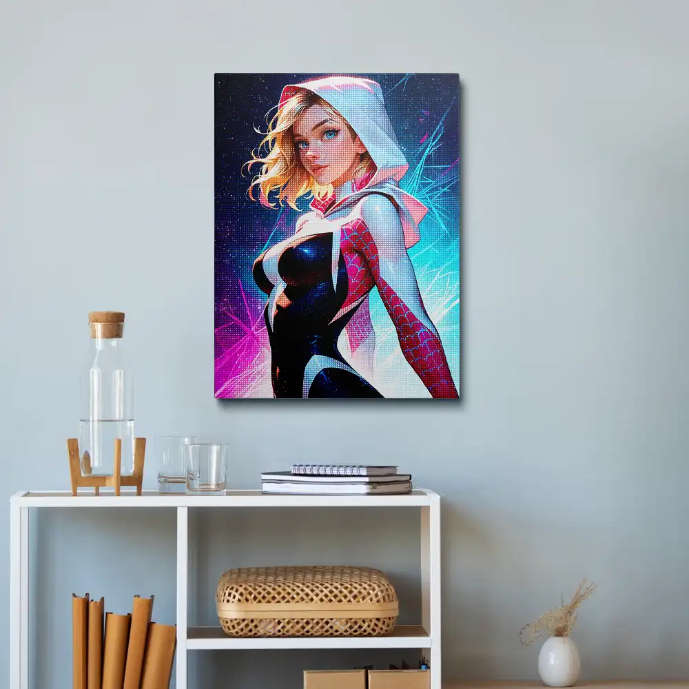 This Painting of spider-woman kit contains all the necessary materials to create your artwork