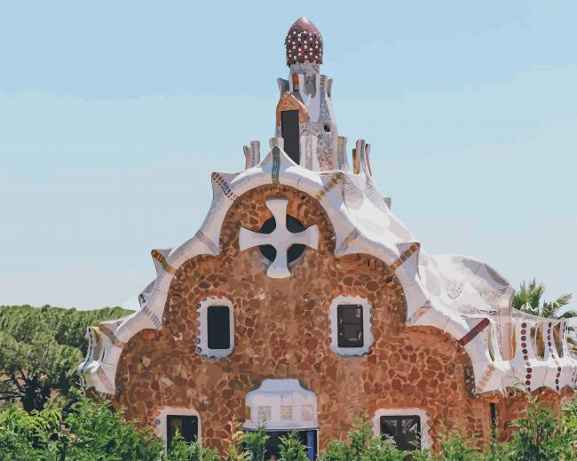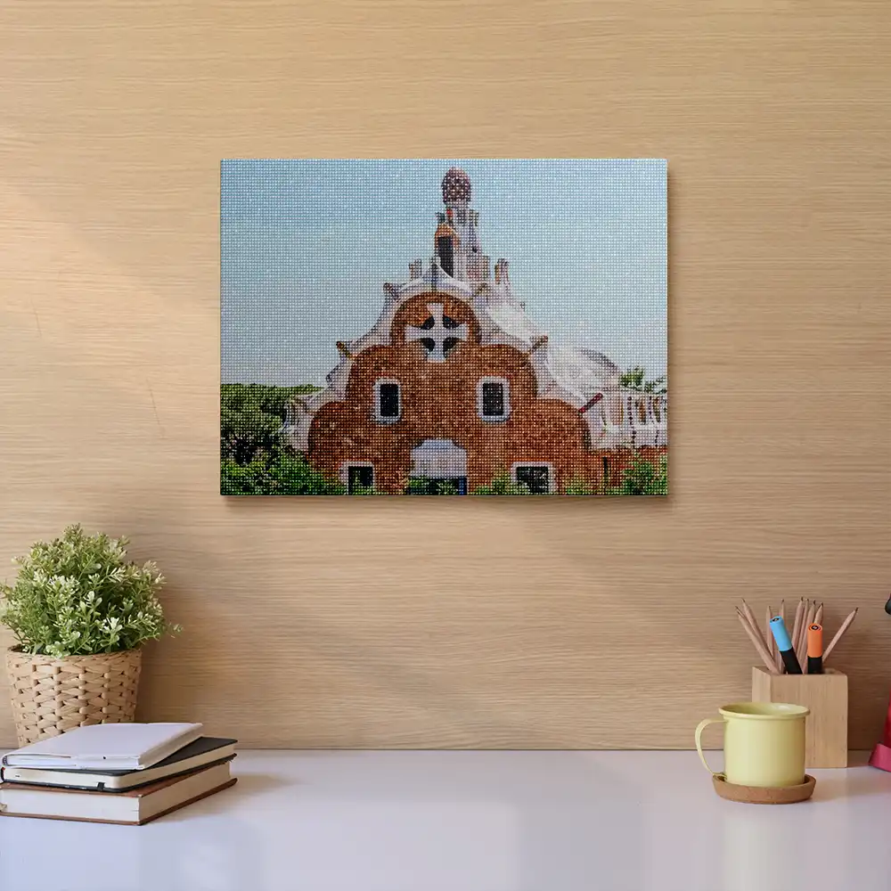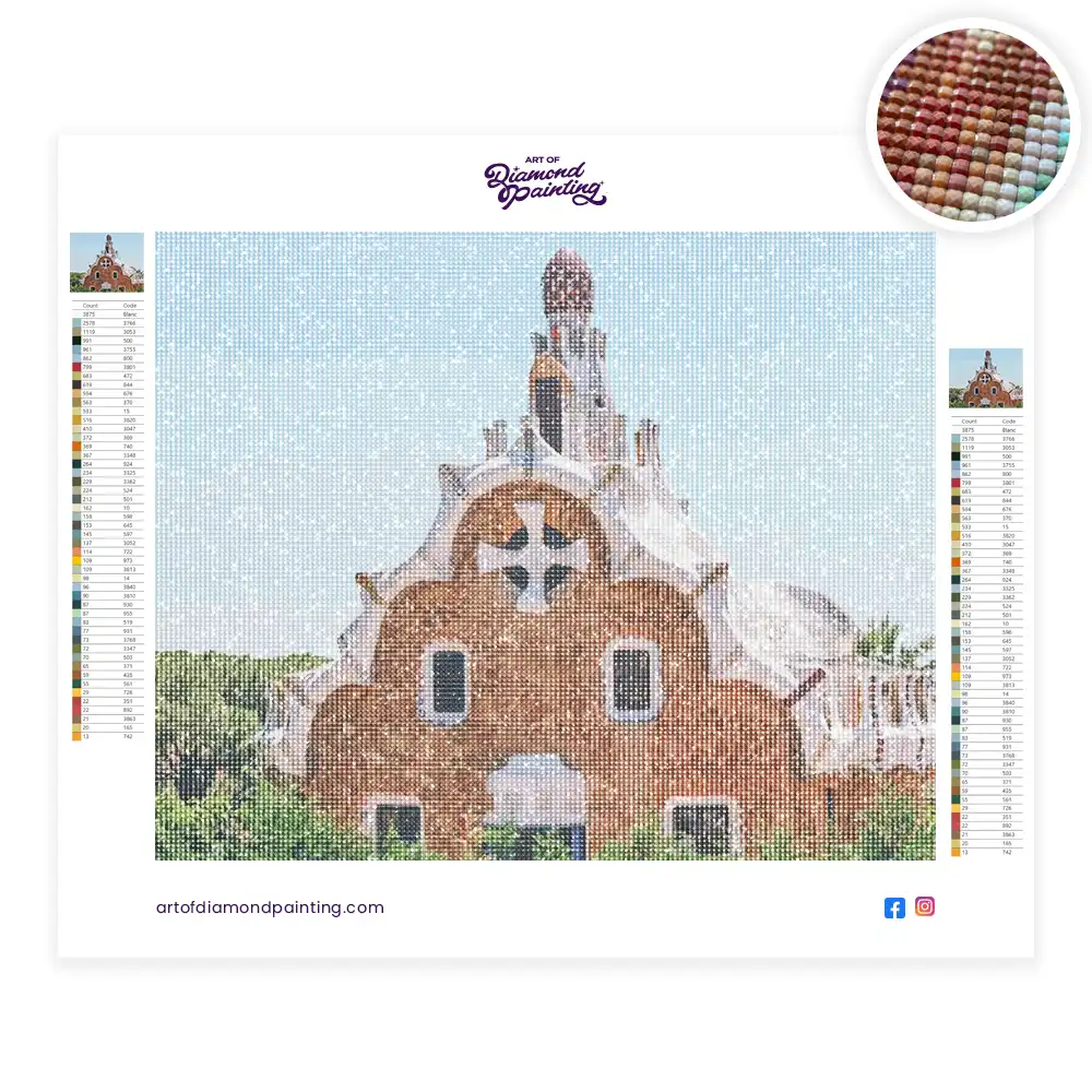 This Park guell barcelona diamond painting kit contains all the necessary materials to create your artwork