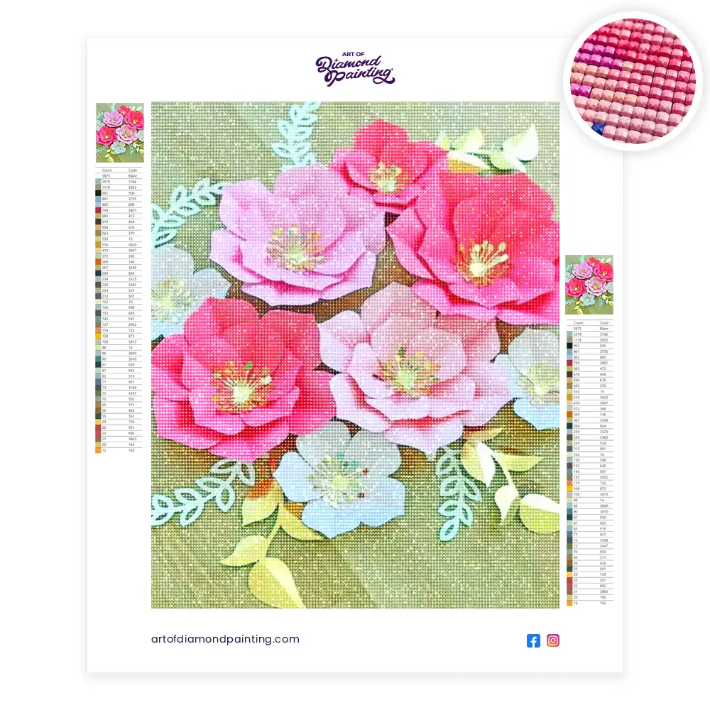 This Pink paper flowers diamond painting kit contains all the necessary materials to create your artwork