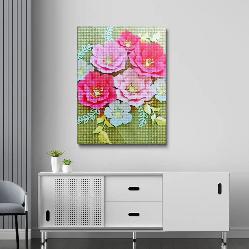 Pink paper flowers diamond painting diamond painting is an awesome way to begin your painting journey. A journey full of colours that sometimes comes with lots of patience, passion, and planning. But, always with love. At the conclusion of each day, it provides a gratifying sensation that enhances your self-assurance as you realize your own accomplishments. So why delay any further? Simply make your purchase and begin today.