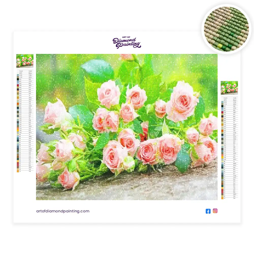 This Pink roses flowers diamond painting kit contains all the necessary materials to create your artwork