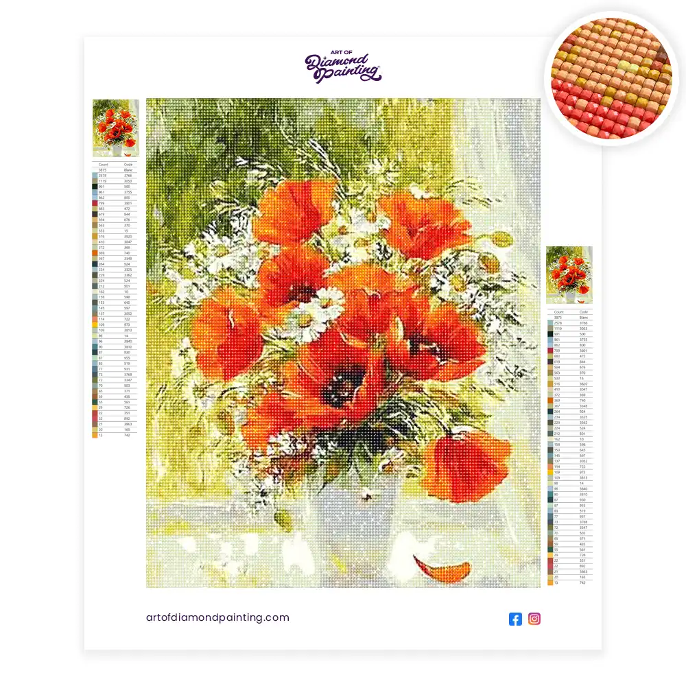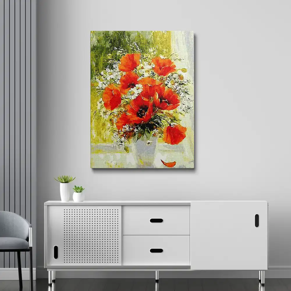 Poppy flower vase diamond painting diamond painting is an awesome way to begin your painting journey. A journey full of colours that sometimes comes with lots of patience, passion, and planning. But, always with love. At the conclusion of each day, it provides a gratifying sensation that enhances your self-assurance as you realize your own accomplishments. So why delay any further? Simply make your purchase and begin today.