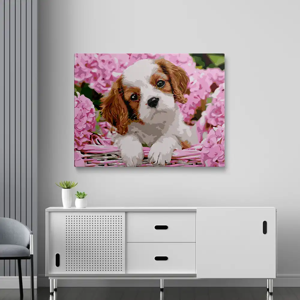 Puppy in Pink Flower Basket diamond painting diamond painting is an awesome way to begin your painting journey. A journey full of colours that sometimes comes with lots of patience, passion, and planning. But, always with love. At the conclusion of each day, it provides a gratifying sensation that enhances your self-assurance as you realize your own accomplishments. So why delay any further? Simply make your purchase and begin today.