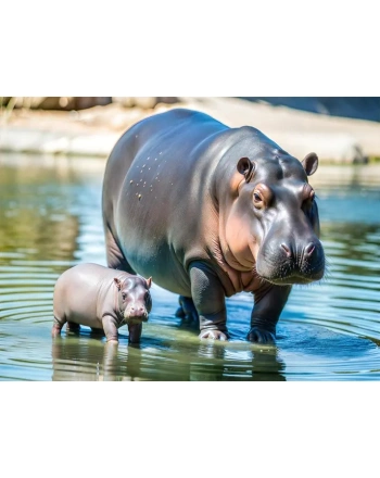 Pygmy hippo calf with mother
