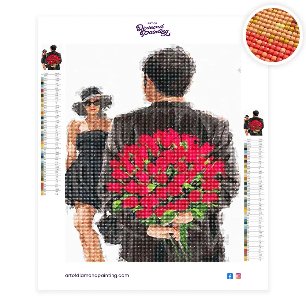 This Romantic lover – romance and love diamond painting kit contains all the necessary materials to create your artwork