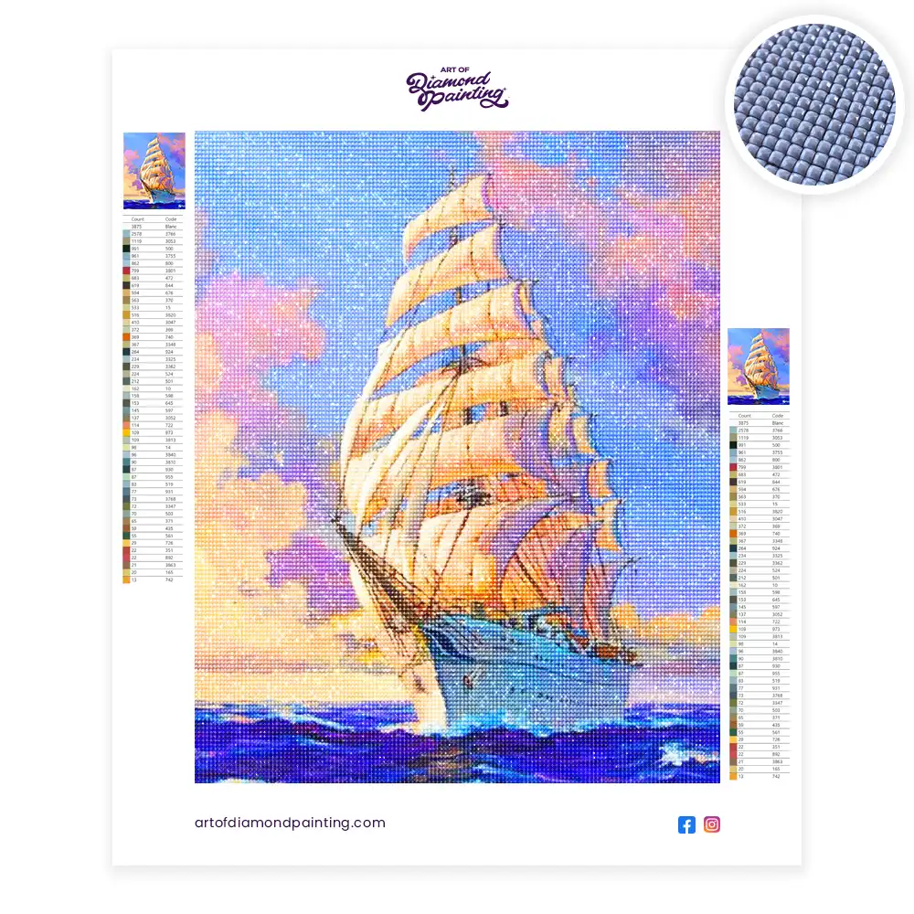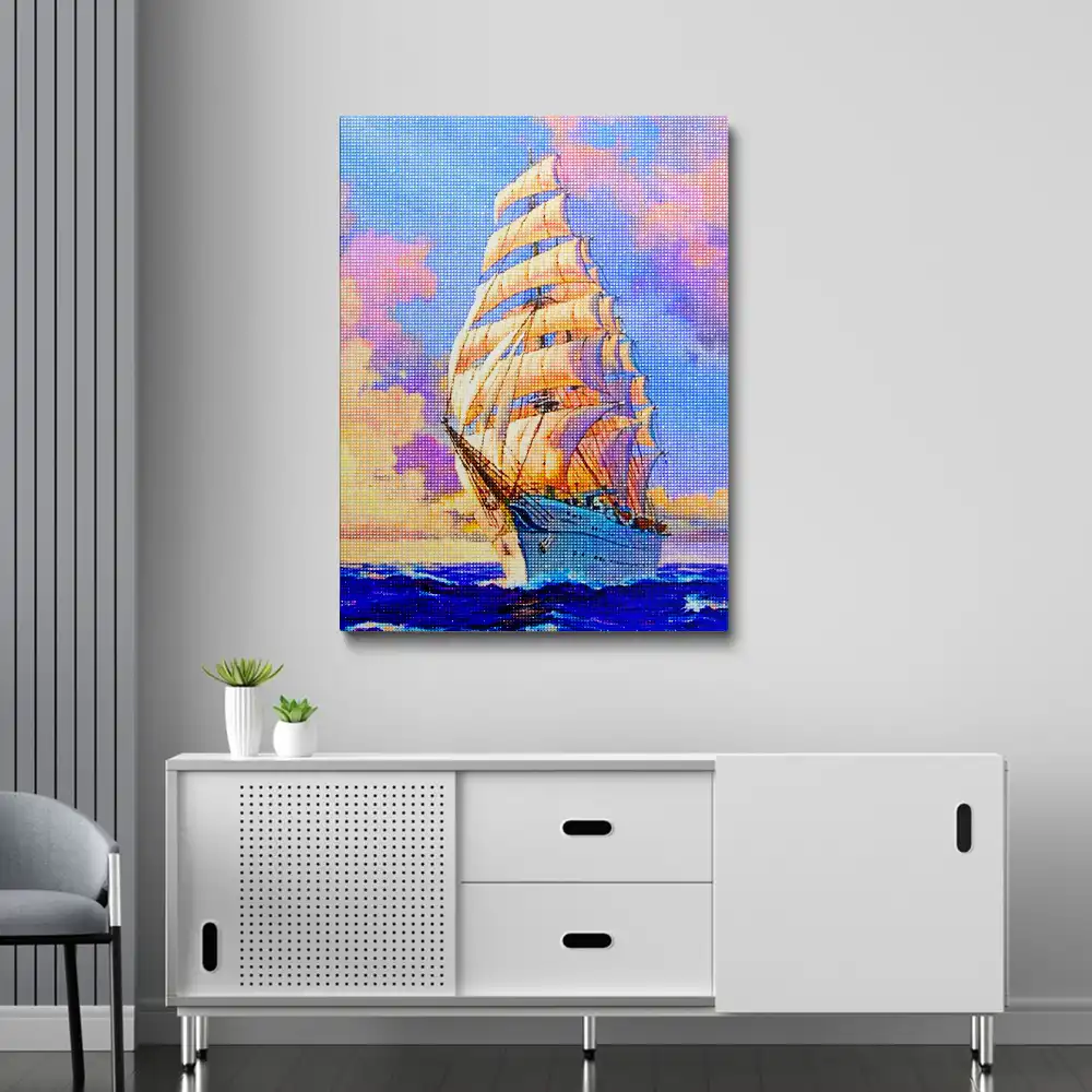 Sailing Ship In sea sunset diamond painting diamond painting is an awesome way to begin your painting journey. A journey full of colours that sometimes comes with lots of patience, passion, and planning. But, always with love. At the conclusion of each day, it provides a gratifying sensation that enhances your self-assurance as you realize your own accomplishments. So why delay any further? Simply make your purchase and begin today.