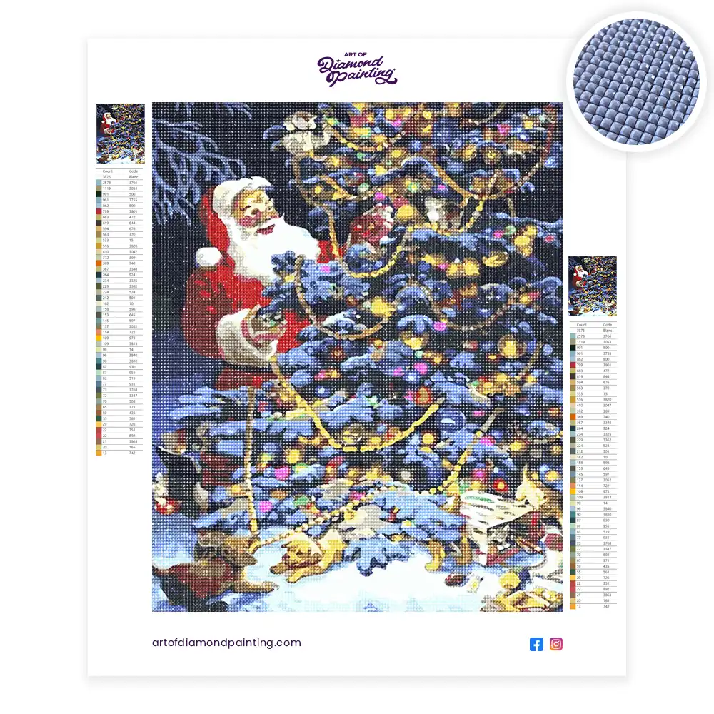 This Santa decorating christmas tree diamond painting kit contains all the necessary materials to create your artwork