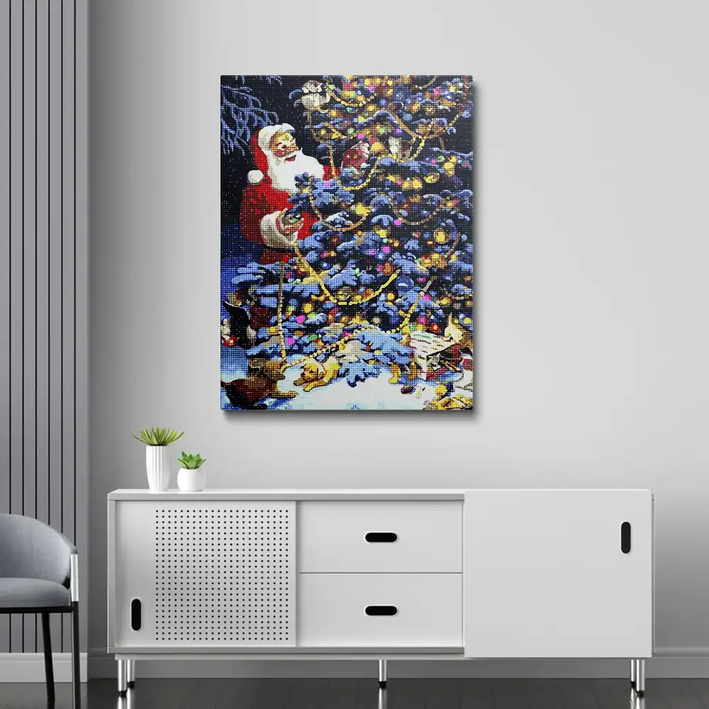Santa decorating christmas tree diamond painting diamond painting is an awesome way to begin your painting journey. A journey full of colours that sometimes comes with lots of patience, passion, and planning. But, always with love. At the conclusion of each day, it provides a gratifying sensation that enhances your self-assurance as you realize your own accomplishments. So why delay any further? Simply make your purchase and begin today.