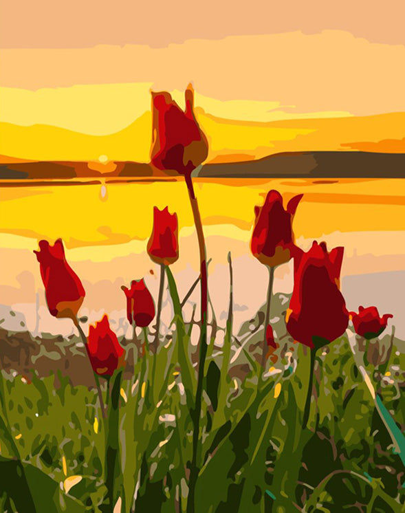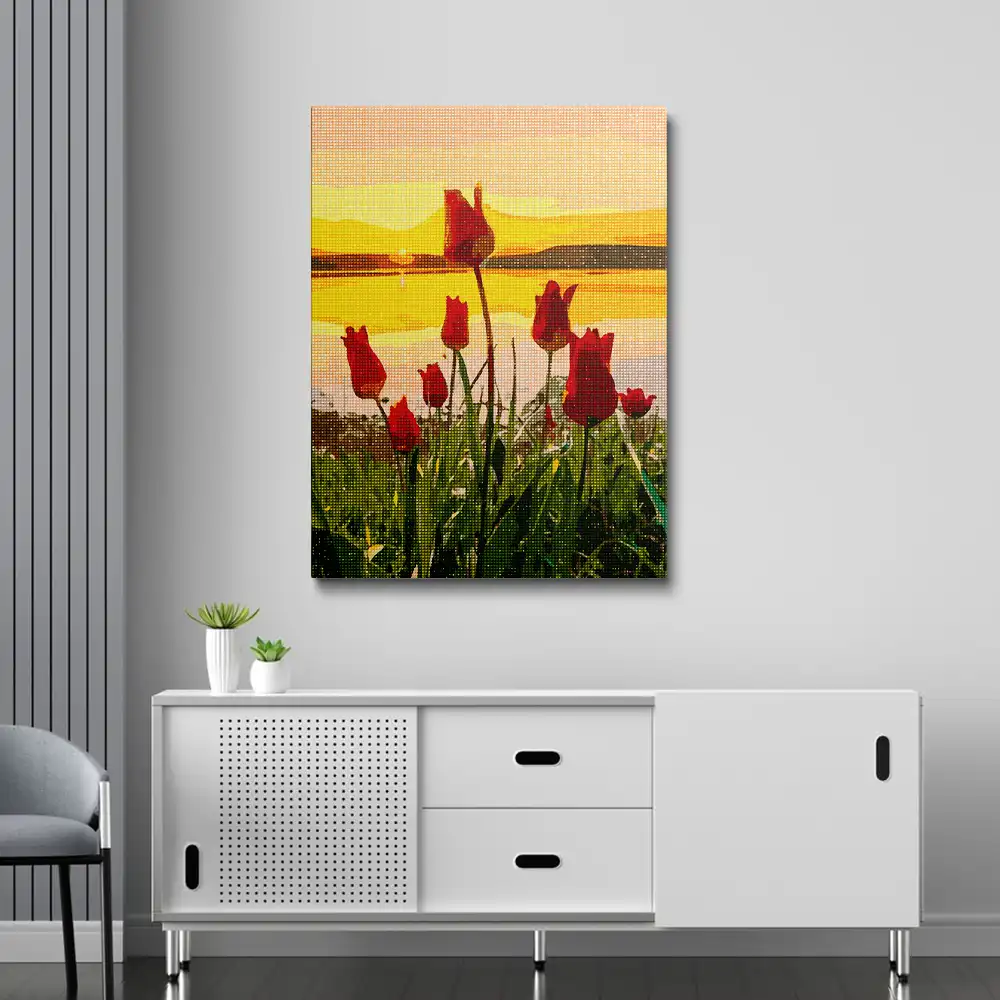 This Springtime sunset diamond painting kit contains all the necessary materials to create your artwork