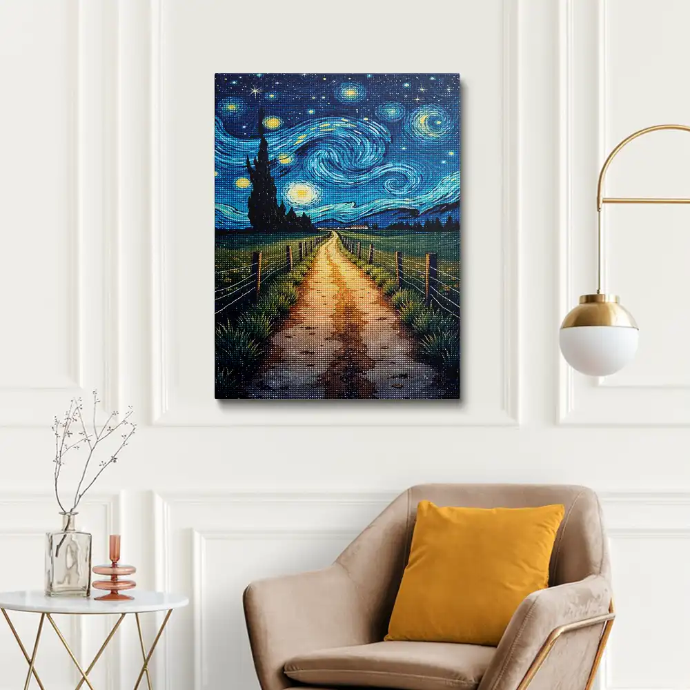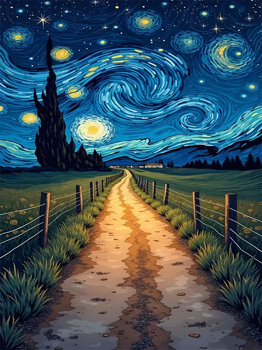 Starry night path painting diamond painting is an awesome way to begin your painting journey. A journey full of colours that sometimes comes with lots of patience, passion, and planning. But, always with love. At the conclusion of each day, it provides a gratifying sensation that enhances your self-assurance as you realize your own accomplishments. So why delay any further? Simply make your purchase and begin today.