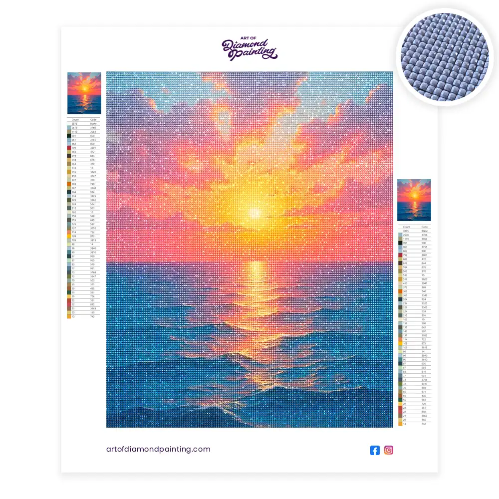 Sunrise over the ocean diamond painting is an awesome way to begin your painting journey. A journey full of colours that sometimes comes with lots of patience, passion, and planning. But, always with love. At the conclusion of each day, it provides a gratifying sensation that enhances your self-assurance as you realize your own accomplishments. So why delay any further? Simply make your purchase and begin today.