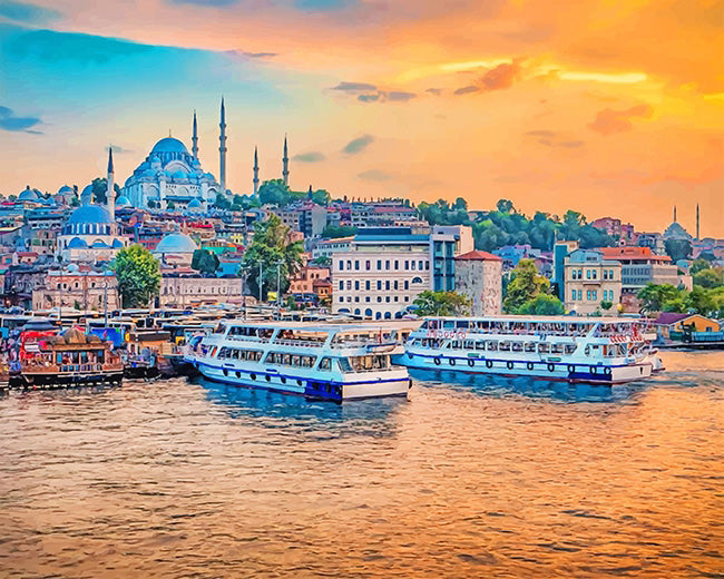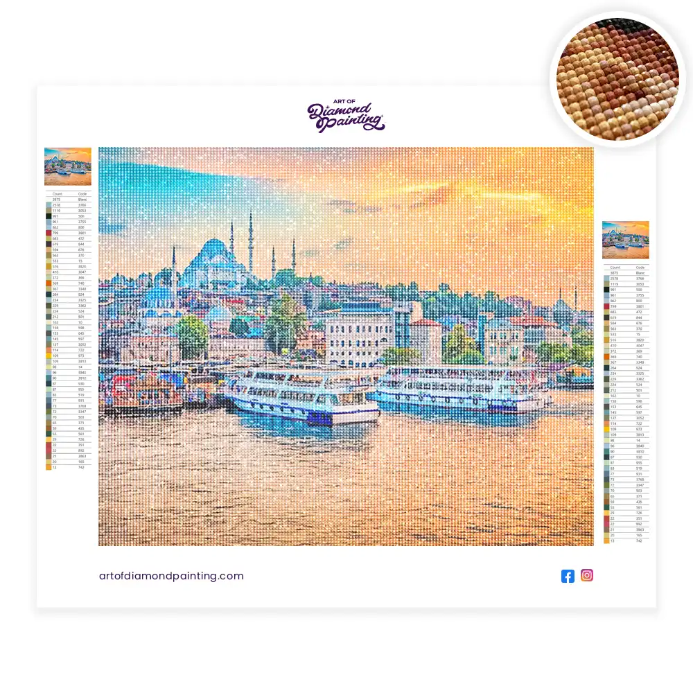 Sunset in istanbul diamond painting diamond painting is an awesome way to begin your painting journey. A journey full of colours that sometimes comes with lots of patience, passion, and planning. But, always with love. At the conclusion of each day, it provides a gratifying sensation that enhances your self-assurance as you realize your own accomplishments. So why delay any further? Simply make your purchase and begin today.