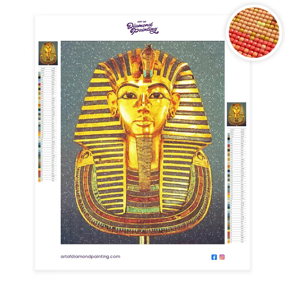 This Toutankhamon pharaoh diamond painting kit contains all the necessary materials to create your artwork