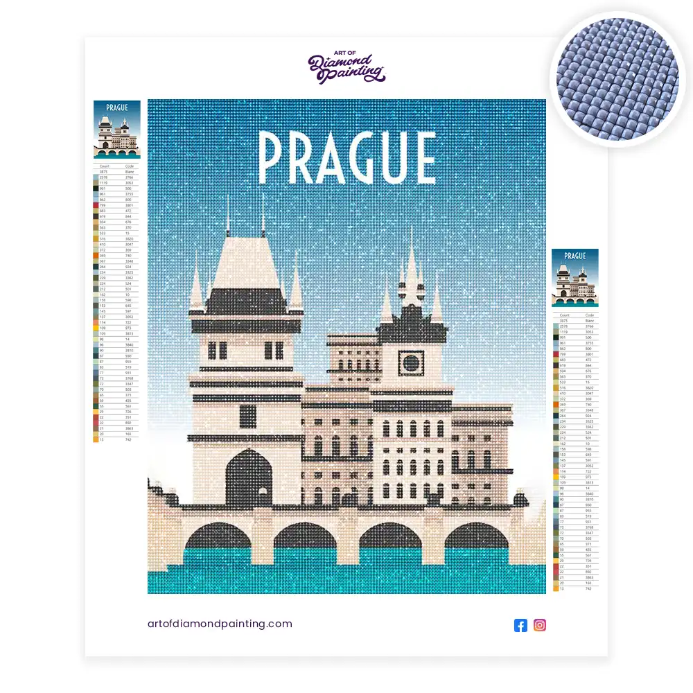This Travel poster prague diamond painting kit contains all the necessary materials to create your artwork