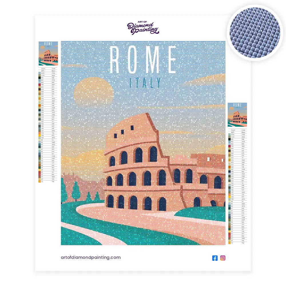 This Travel poster rome diamond painting kit contains all the necessary materials to create your artwork
