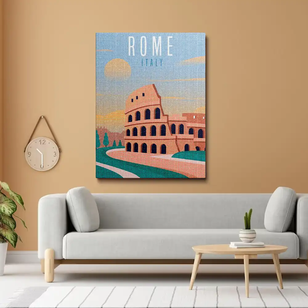 Travel poster rome diamond painting diamond painting is an awesome way to begin your painting journey. A journey full of colours that sometimes comes with lots of patience, passion, and planning. But, always with love. At the conclusion of each day, it provides a gratifying sensation that enhances your self-assurance as you realize your own accomplishments. So why delay any further? Simply make your purchase and begin today.