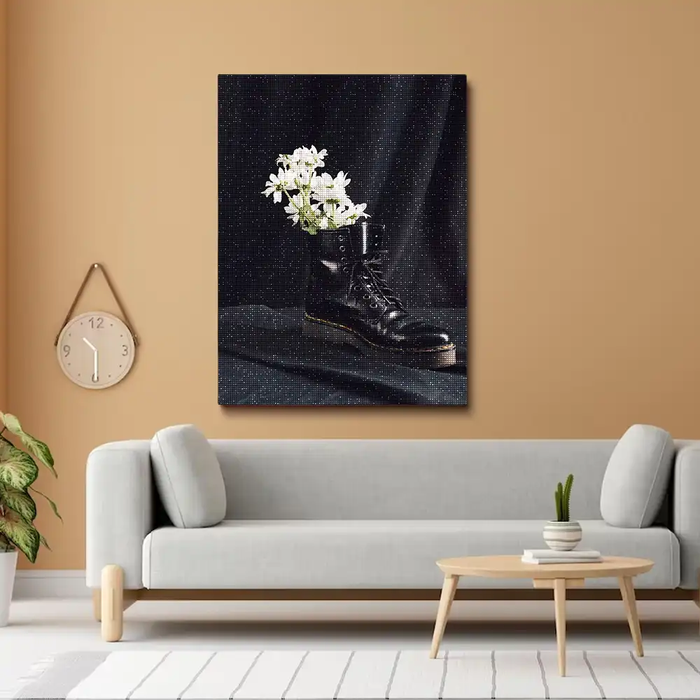 White flowers in boot diamond painting is an awesome way to begin your painting journey. A journey full of colours that sometimes comes with lots of patience, passion, and planning. But, always with love. At the conclusion of each day, it provides a gratifying sensation that enhances your self-assurance as you realize your own accomplishments. So why delay any further? Simply make your purchase and begin today.
