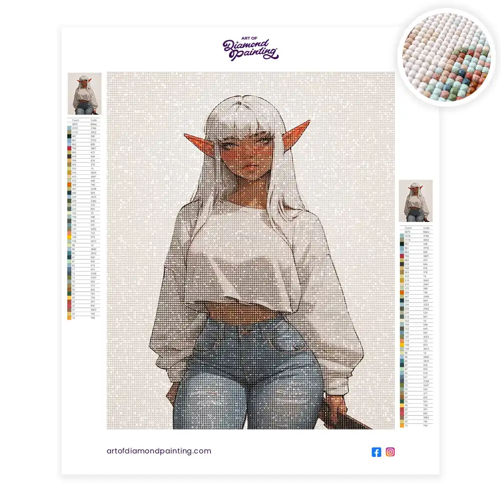 White-haired elf girl diamond painting is an awesome way to begin your painting journey. A journey full of colours that sometimes comes with lots of patience, passion, and planning. But, always with love. At the conclusion of each day, it provides a gratifying sensation that enhances your self-assurance as you realize your own accomplishments. So why delay any further? Simply make your purchase and begin today.