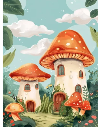 Painting of mushroom houses
