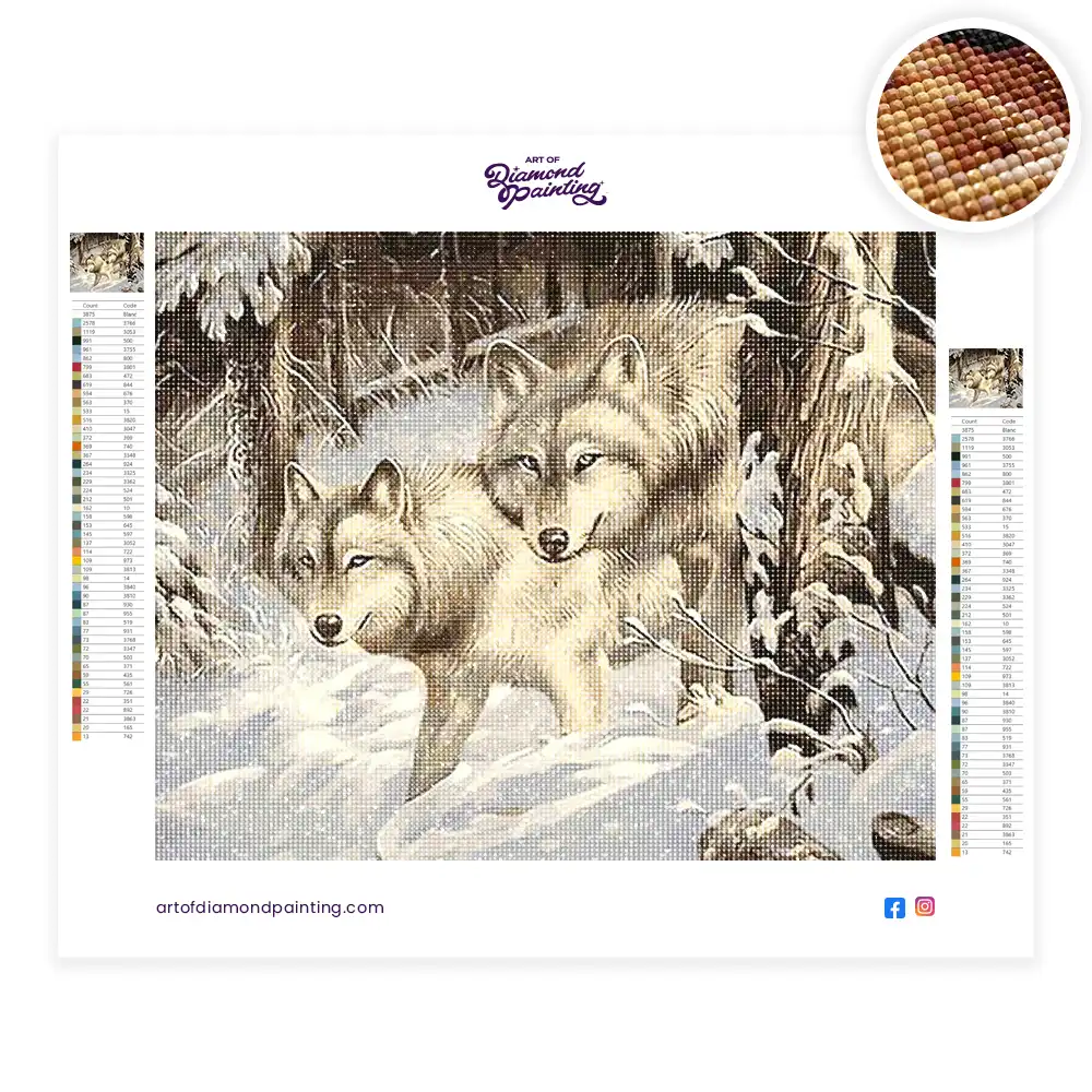This Wolf in Snow diamond painting kit contains all the necessary materials to create your artwork