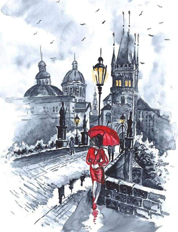 This Woman in red and umbrella diamond painting kit contains all the necessary materials to create your artwork