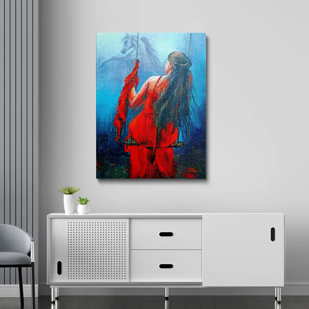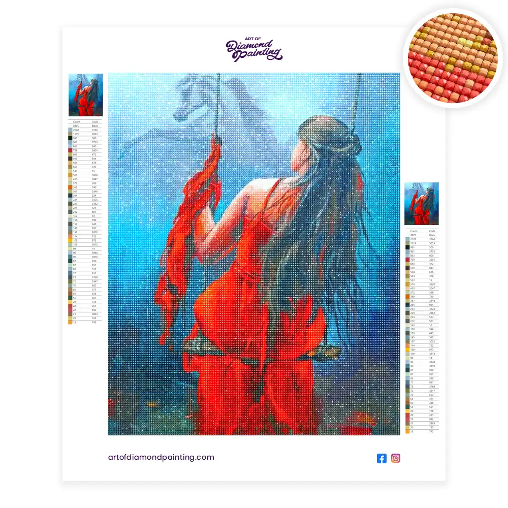 Woman swinging diamond painting diamond painting is an awesome way to begin your painting journey. A journey full of colours that sometimes comes with lots of patience, passion, and planning. But, always with love. At the conclusion of each day, it provides a gratifying sensation that enhances your self-assurance as you realize your own accomplishments. So why delay any further? Simply make your purchase and begin today.